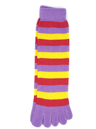 Bold and Bright Red, Purple, and Yellow Stripe Toe Socks | ToeHugger