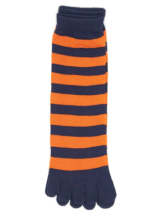 Light up your steps with our Orange and Blue Stripe Toe Socks! This vibrant design combines bold orange and deep blue stripes for a dynamic, cheerful look. Designed for both comfort and durability, these socks add a pop of personality to any outfit while keeping your toes cozy and supported.